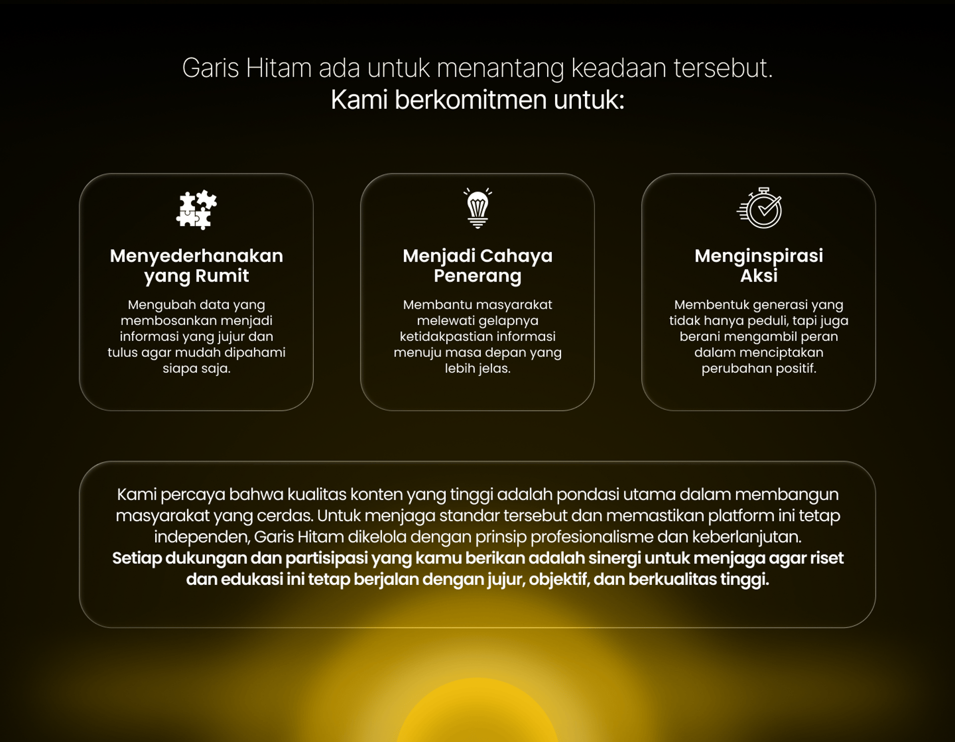 Untuk menjaga standar tersebut dan memastikan platform ini tetap independen, Garis Hitam dikelola dengan prinsip profesionalisme dan keberlanjutan.
